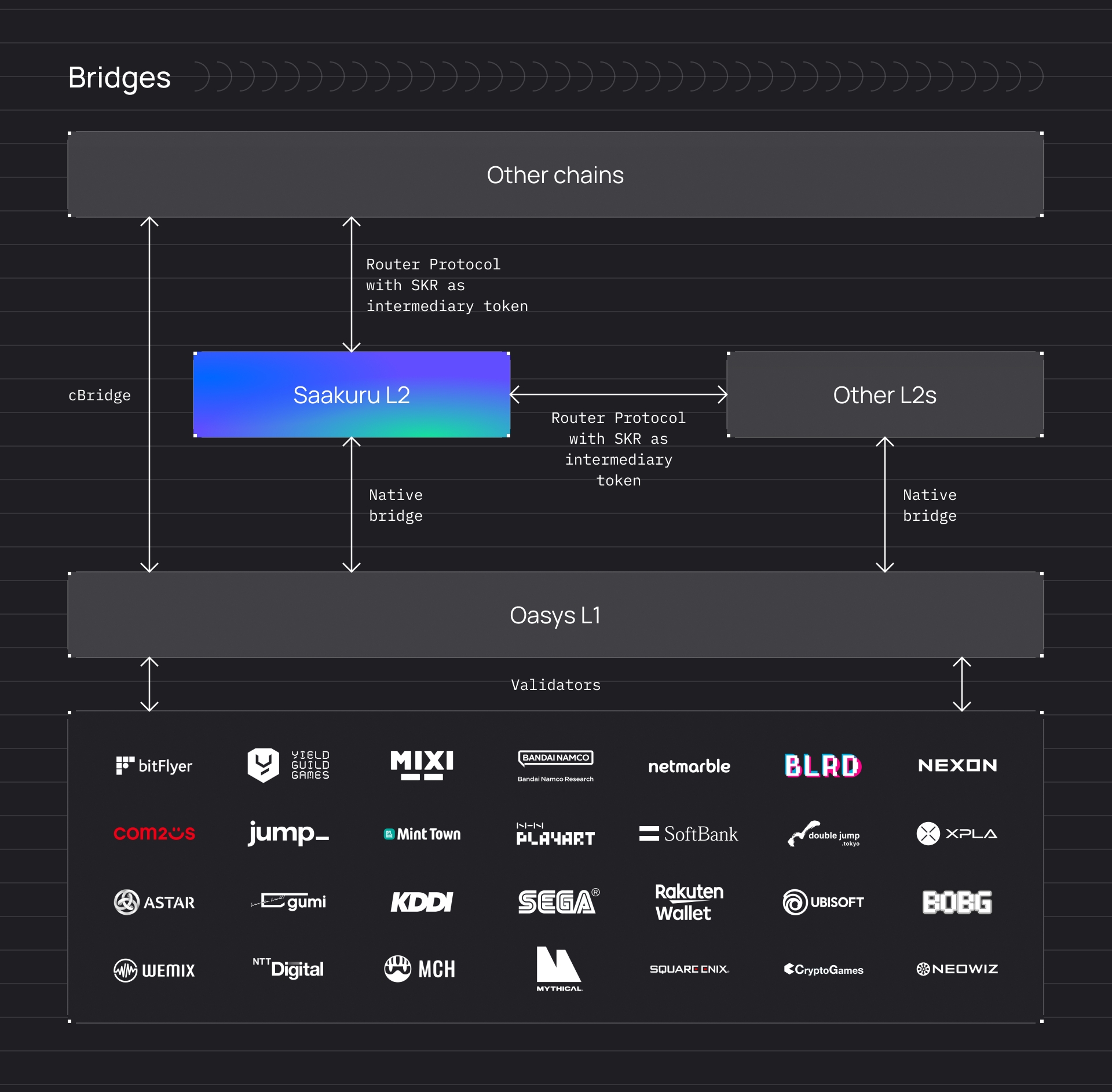 In addressing the challenges of scalability and efficiency within the blockchain ecosystem, our Saakuru blockchain incorporates high-speed Optimistic Rollups technology developed by Oasys. This integration is pivotal to our strategy for enhancing transaction throughput and reducing operational costs across the network. Saakuru Blockchain leverages the innovative OP Stack for its foundation and enhances security through the Oasys L1 Protocol, which is backed and actively validated by esteemed companies in the gaming industry, such as Sega, Gumi, Square Enix, Com2Us, Netmarble, and Bandai Namco.