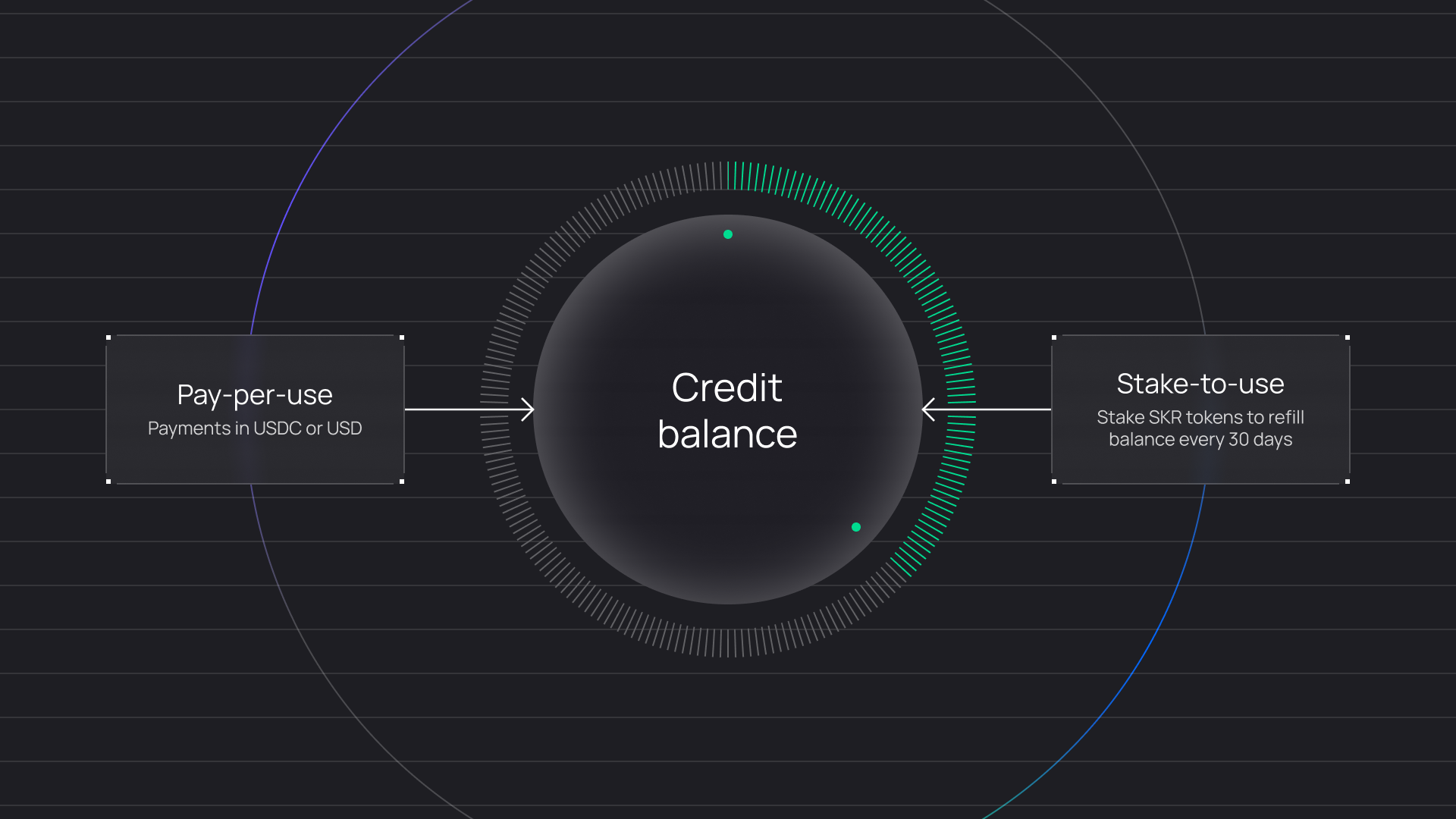 To make his solution cost-effective, the developer can stake SKR tokens and refill his credit balance every Month based on the amount staked on the first day of the month.